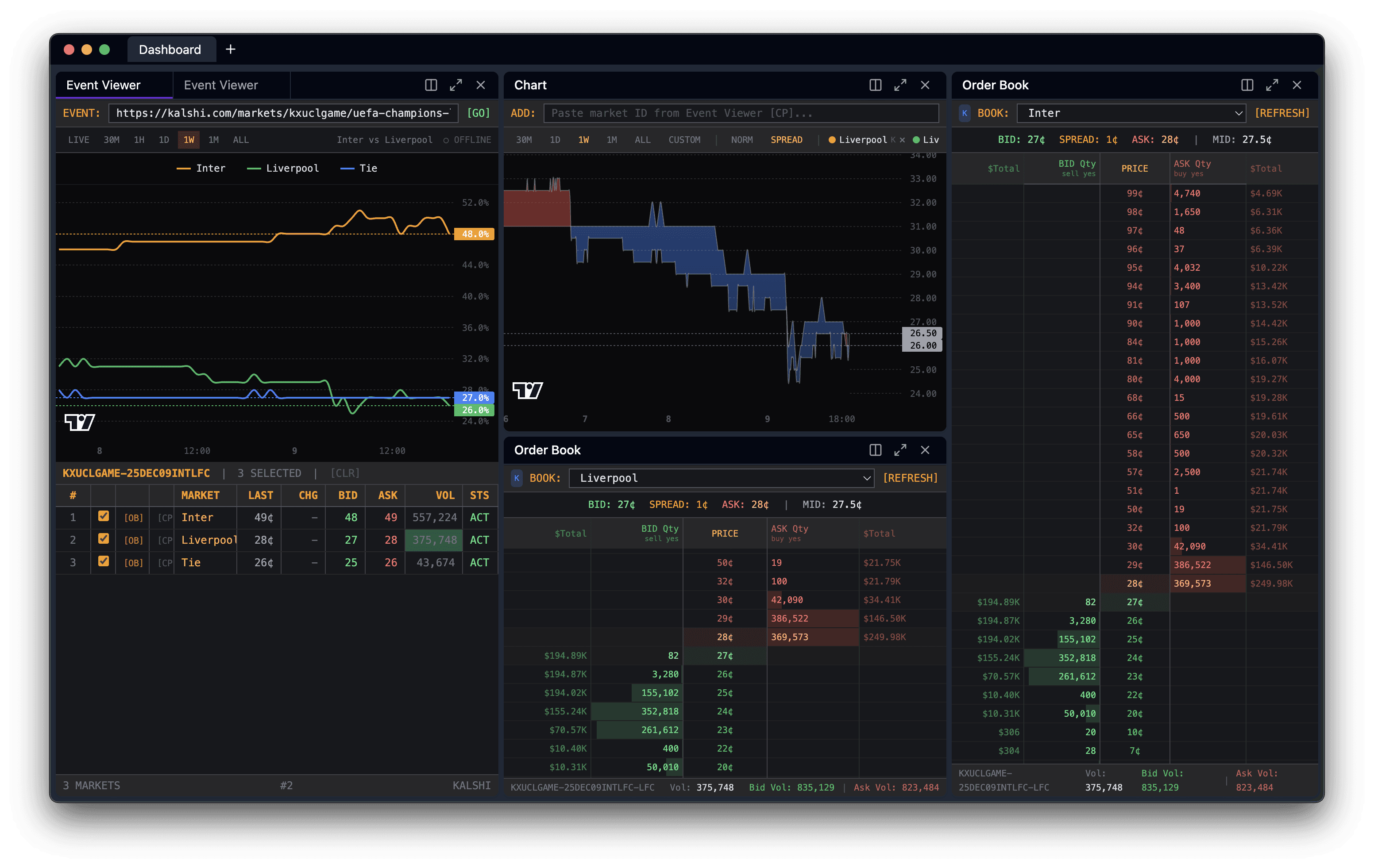 View and trade prediction markets on Kalshi and Polymarket from one unified interface. Real-time data, fast execution, zero friction.